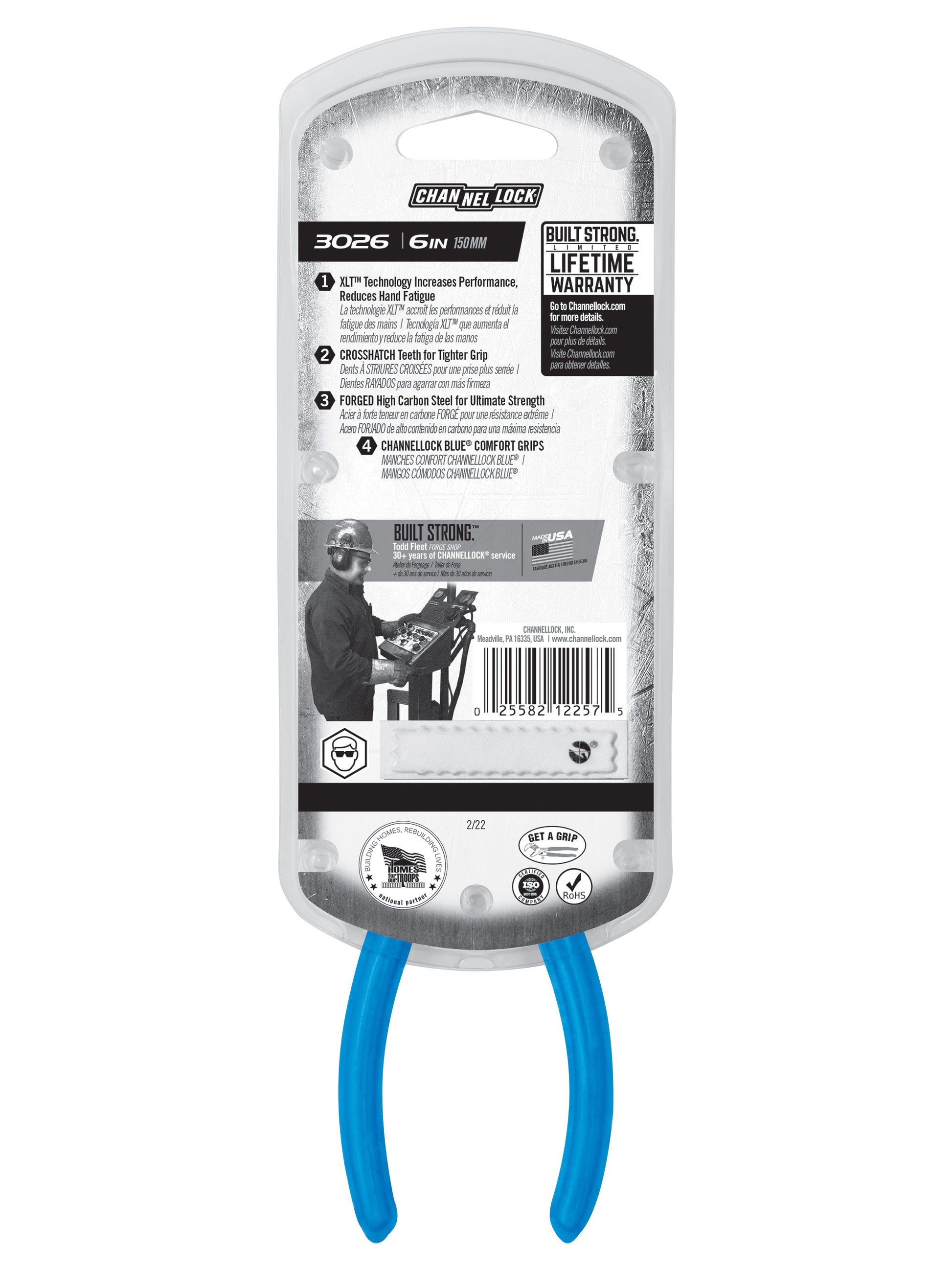 CHANNELLOCK® Long Nose Pliers feature a crosshatch teeth pattern providing a maximum grip and a narrow nose profile that delivers extra precision in hard-to-reach areas. These pliers offer a sleek, lightweight design and feature Xtreme Leverage Technology (XLT™) so considerably less force is required to grab and draw wire. CHANNELLOCK® Long Nose Pliers are made in USA and forged from high carbon U.S. steel that is specially coated for ultimate rust prevention.