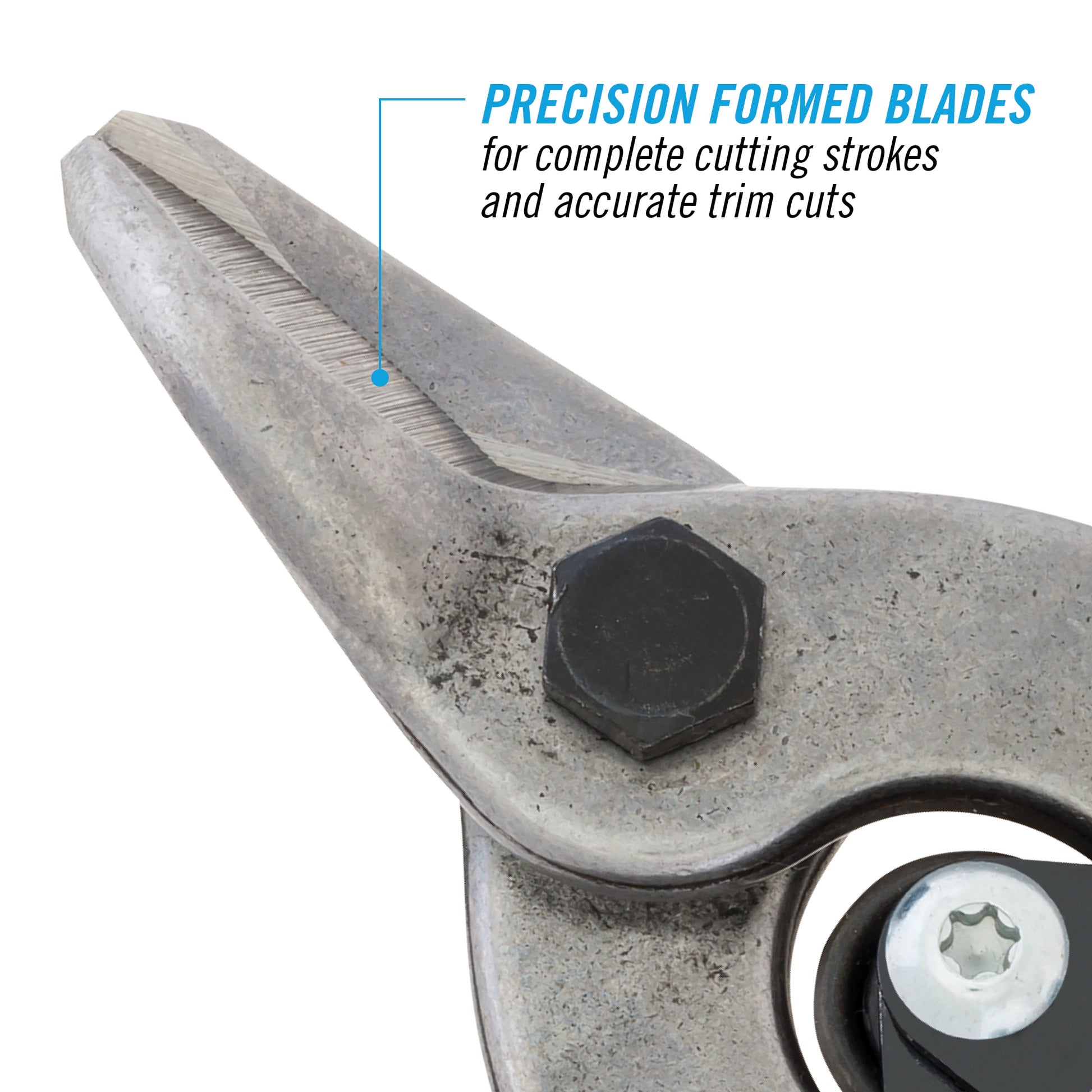 CHANNELLOCK® Bulldog Snips offer dual-handed gripping power, resulting in cleaner curved and straight cuts with minimum effort on heavy duty notch cuts. CHANNELLOCK® Aviation Snips are 100% Made in USA and the blades are forged from molybdenum alloy steel for durability and strength. The combination of precision machined serrations on cutting blades, 8:1 compound leverage and high tensile steel handles greatly optimizes cutting performance with less effort.