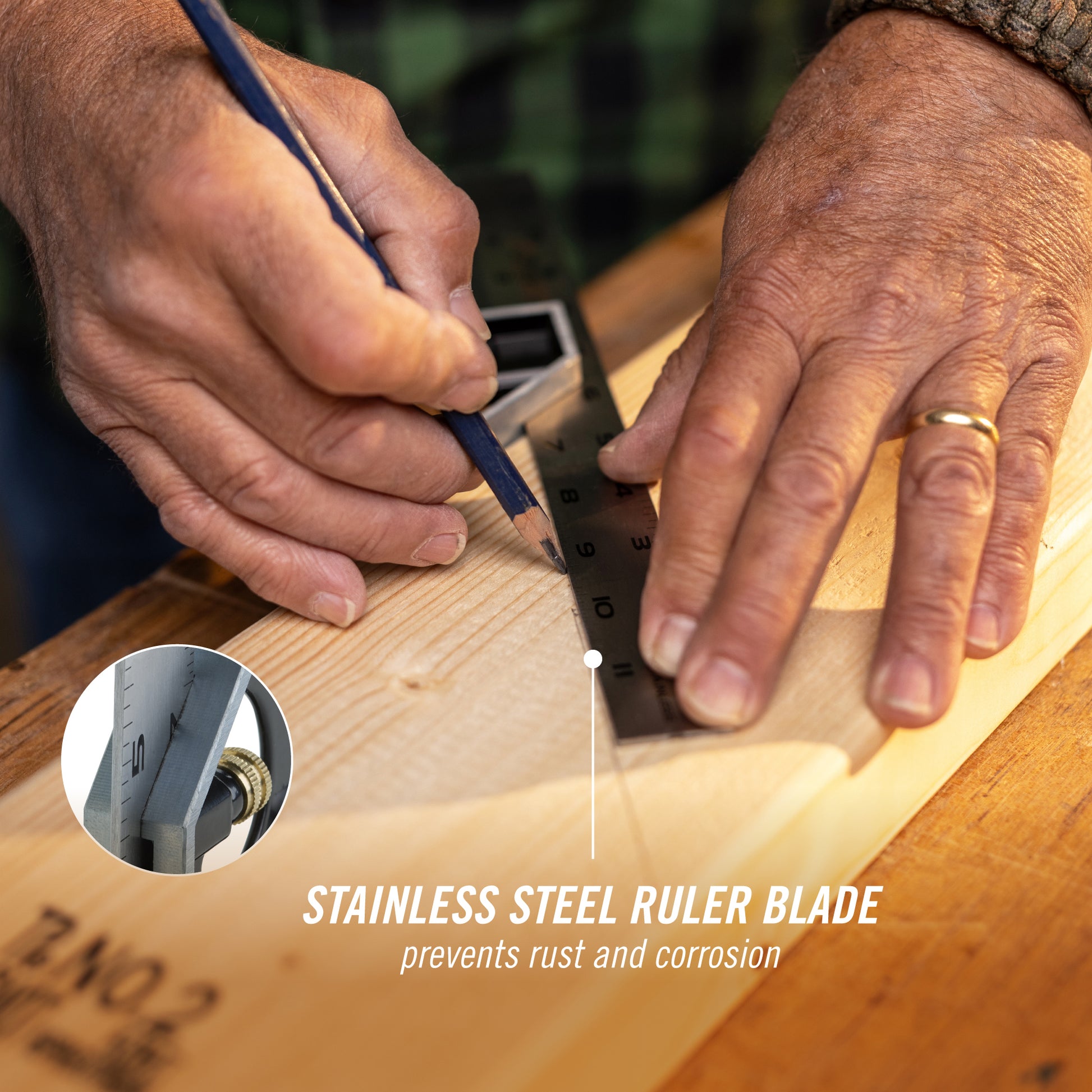 - DURABLE CAST ZINC HEAD for added stability when marking, measuring, and laying out 90° and 45° angles