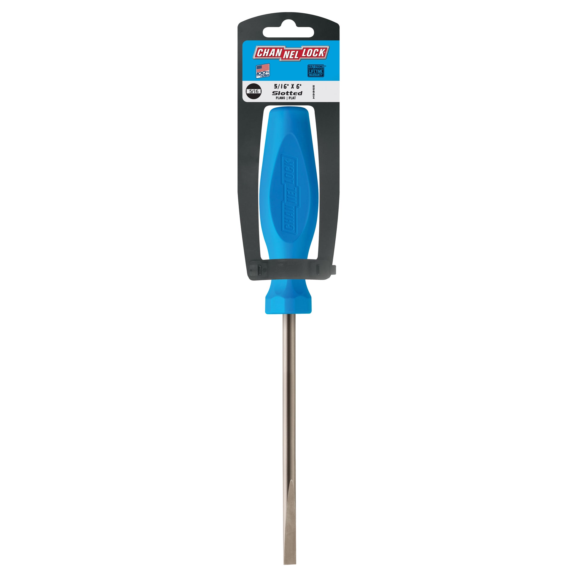 The CHANNELLOCK® Slotted 5/16 x 6-inch Professional Screwdriver offers advanced performance features to conquer the toughest jobs. Specifically designed to fit the needs of today’s trades professional, CHANNELLOCK® screwdrivers are equipped with precision-machined vacuum heat-treated tri-alloy steel blades for durability and have a non-porous, coated finish for lasting corrosion resistance. The high-torque, reinforced handles include a part indicator for easy identification, and tips are precision-machined for a proper fit on fasteners with superior control. Exceed the expectation with CHANNELLOCK® Professional Drivers made in the USA.